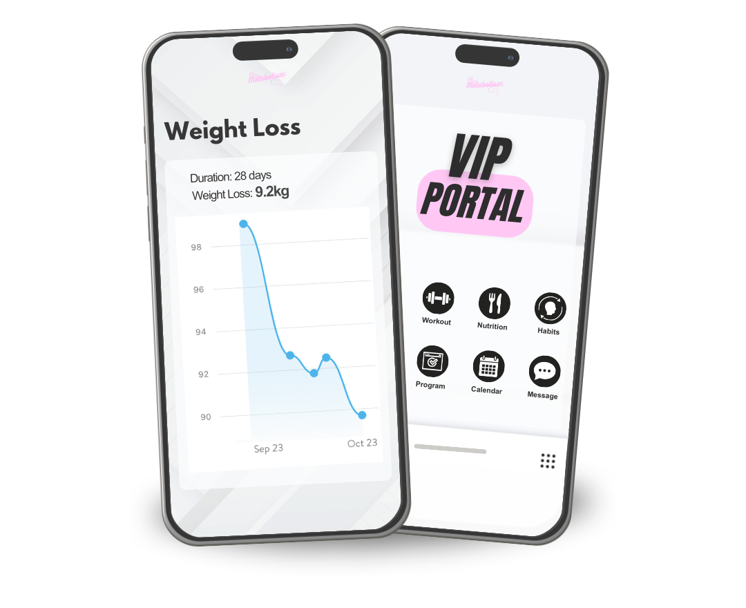 Access your personal account and VIP Portal to take full control of your fat loss journey. Track your progress, see your results in real time, and follow your step-by-step program with ease, all in one convenient place.